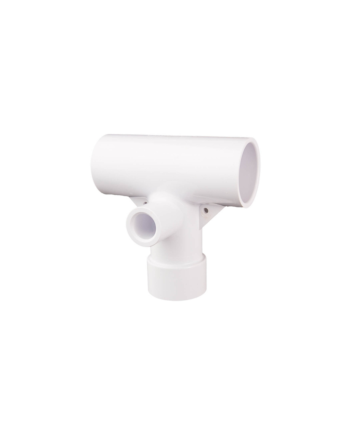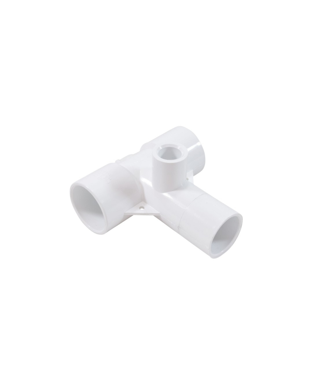 The Double Tee Gunite Jet (1.5″ × 1.5″ × 1.5″ SPG) is a plumbing fitting designed for gunite pool systems, providing combined water and air flow through a common jet assembly. This dual-port (tee) design enables the water portion to recirculate the pool, while the air port can connect to a blower system to inject air bubbles into the pool. Its compact casting is built for durability in harsh environments, and it’s ideal for installations where both water and air injection are needed at a single point in the pool wall.