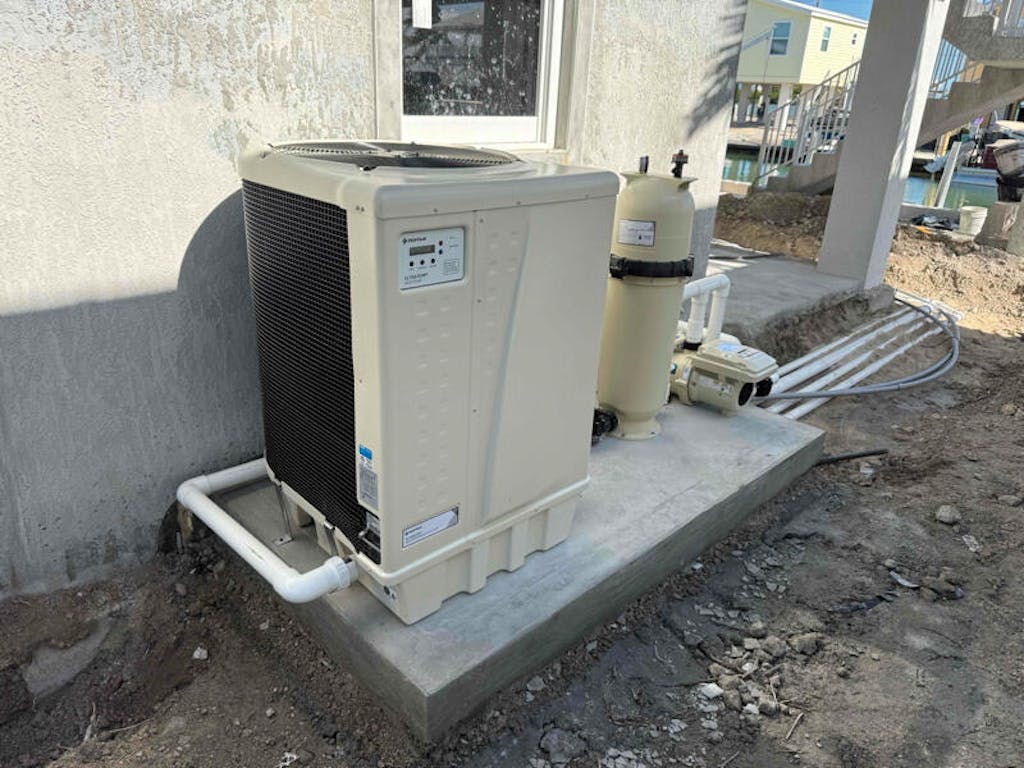 Heat Pump Installation Option Details: Covers replacement of an existing heat pump only. Includes up to 20 feet of pipe, 8 fittings, one three-way valve, and one check valve for plumbing connections. Includes electrical connection of no more than 5 feet to the unit. The electrical panel used to feed the heat pump must have sufficient capacity for the unit’s amp draw. There must be a clear passway or walkway from the installation site to the driveway where the technician’s vehicle is parked. Price includes removal of the old unit, if needed. Service available in Miami-Dade, Broward, and Monroe counties.