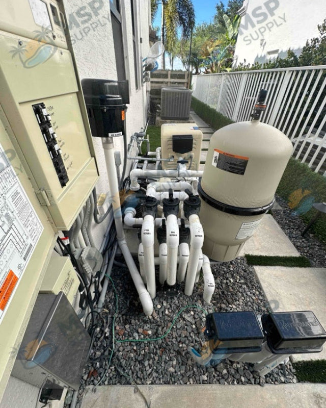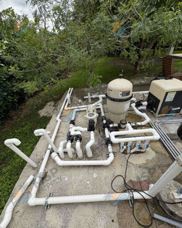 Filter Installation Option Details: Covers replacement of an existing pool filter only. Includes up to 5 feet of pipe and 4 fittings for plumbing connections. Service available in Miami-Dade, Broward, and Monroe counties.