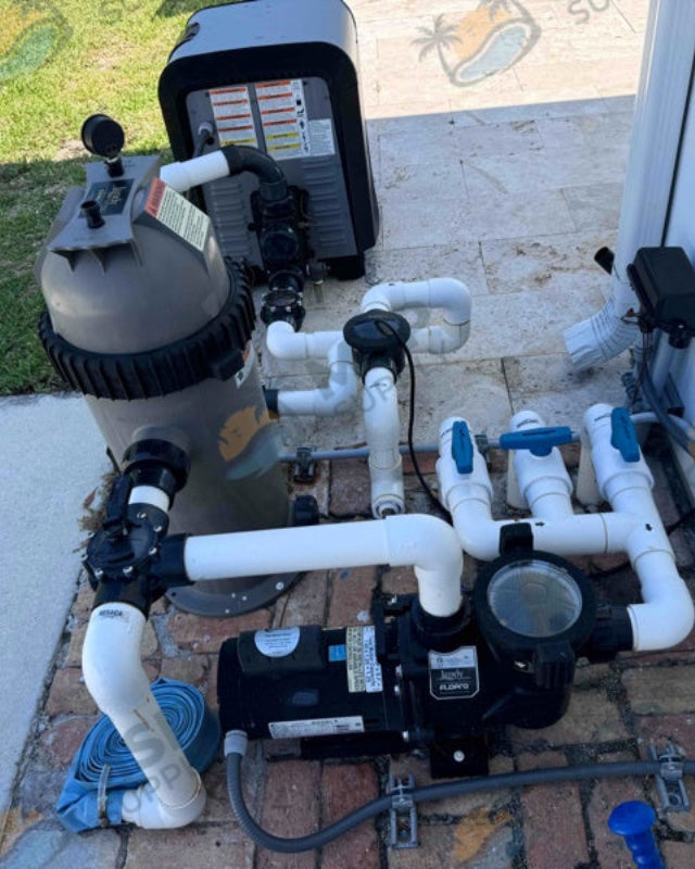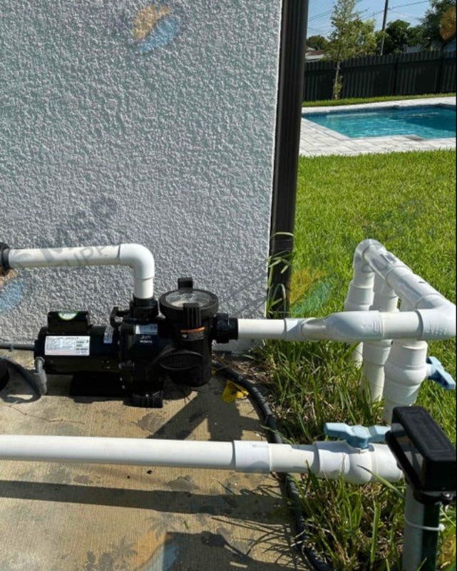 Pool Pump Installation Option Details: Covers replacement of an existing pool pump only. Includes up to 5 feet of pipe and 4 fittings for plumbing connections. Electrical work includes connection to the existing electrical cable only β does not include rewiring or running a new cable. Service available in Miami-Dade, Broward, and Monroe counties.
