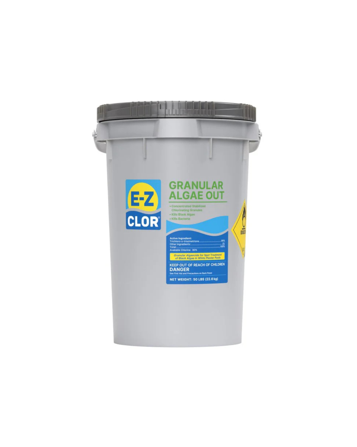 The E-Z Clor Granular Algae Out is a powerful chlorine-based sanitizer and algaecide formulated to keep pool water clean, clear, and free from algae growth. Its fast-dissolving granular formula provides immediate chlorination, making it ideal for both routine maintenance and shock treatments. Designed for easy application, this product effectively kills bacteria, controls algae, and restores water clarity in residential and commercial pools. Packaged in a large 50 lb pail, it offers a cost-effective solution for pool owners seeking reliable, long-lasting sanitation.