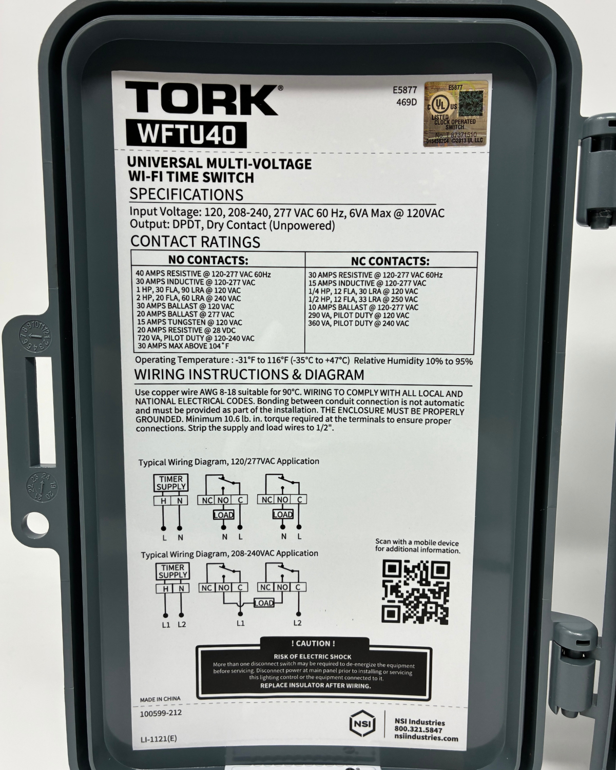 Wifi Timer 40A 120-277V DPDT Outdoor Plastic Gray Case